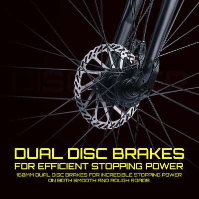 Compared to single-wall rims, double-wall alloy rims are sturdier and more resistant to damage. Single-wall rims are not suitable for off-road riding due to the increased risk of wheel damage and it has a much shorter lifespan than double-wall rims. The bike also has dual disc brakes for powerful braking. It generates more braking power than standard brakes and helps you ride confidently on different trails.