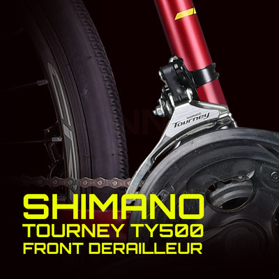 Shimano groupsets are known for their value, quality, and ease of use. Shimano 21-speed gears ensure you maintain a steady cadence no matter what the terrain is like. Shimano derailleurs will improve your riding experience. And ultimately, Shimano EF500 shifters will make your shifting job hassle-free.