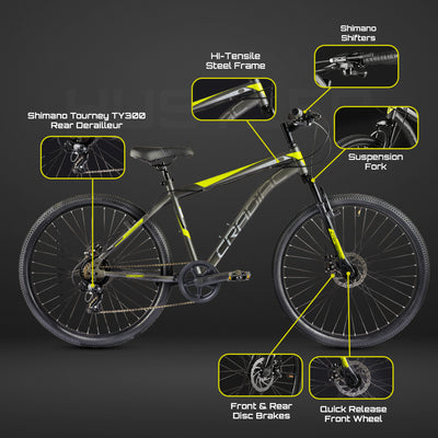 Hustler 7 Speed 26 T Hybrid Cycle/ City Bike (7 Gear, Grey)