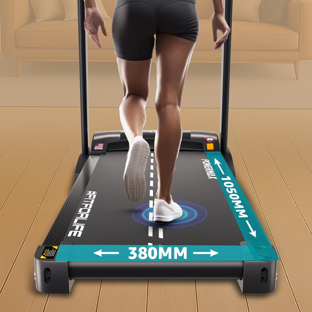 - Spacious Running Surface of 1050 x 380 mm with a diamond wave anti-slip belt ensures comfortable and stable running.